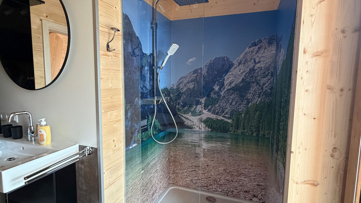Das Highlight ist die private Wellness-Oase: ein Badezimmer mit Dusche und freistehender Badewanne sowie ein separates WC. Für zusätzliche Entspannung sorgt ein TV im Badezimmer sowie ein gemütlicher Pelletsofen im Wohnbereich.